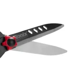 قیچی شمشاد زن تلسکوپی رونیکس مدل RH-3111قیچی شمشادزن تلسکوپی رونیکس مدل RH-3111 ابزاری برای افزایش دقت و راحتی در باغبانی است. این قیچی دارای تیغهای از جنس فولاد MN65 است که دوام و تیزی بالایی دارد و با طول ۲۵۴ میلیمتر (۱۰ اینچ) برای بریدن شاخههای بلند بسیار مناسب است. ضربهگیر لاستیکی مقاوم، خستگی بازو و شانه را کاهش داده و از استهلاک تیغه در استفادههای طولانیمدت جلوگیری میکند.